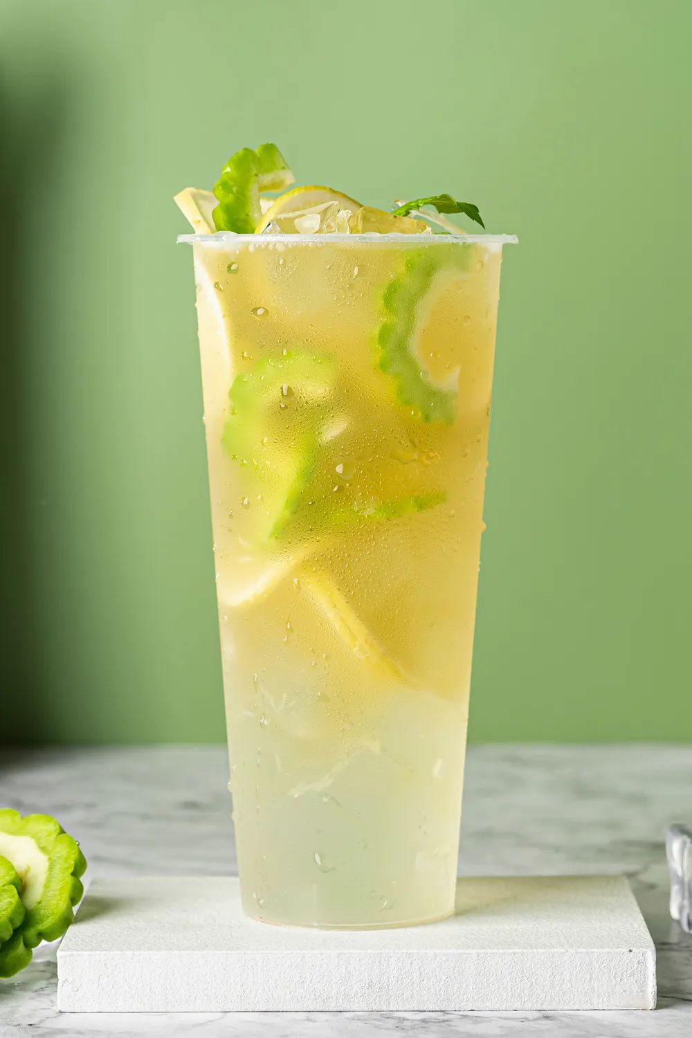 切记,苦柠茶拿到要立马开喝,暴打后的柠檬遇水后逐渐发生解酶反应,会生成柠檬苦素,加上同样被暴打的苦瓜,一旦放置超过半小时,立马让你苦到怀疑人生。