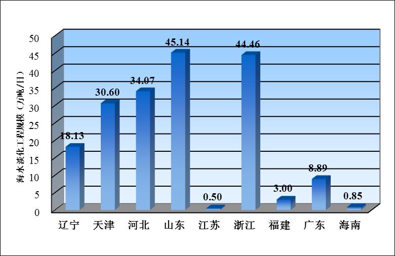 图片来源:《2021年全国海水利用报告》截至2021年底,全国海水淡化工程分布在辽宁、天津、河北、山东、江苏、浙江、福建、广东、海南等沿海9个省市。海水淡化水主要用于工业用水和生活用水。其中,工业用水主要集中在沿海地区北部、东部和南部海洋经济圈的电力、石化、钢铁等高耗水行业;生活用水主要集中在海岛地区和北部海洋经济圈的天津、青岛2个沿海城市。