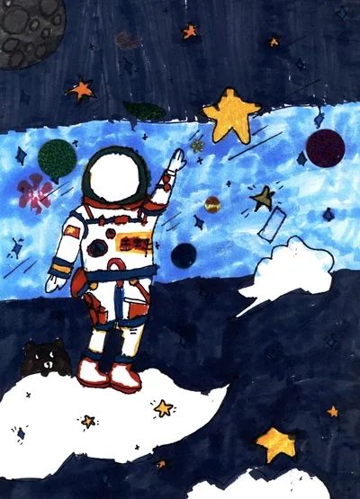儿童画《摘星星的妈妈回来了》。女儿/画2021年10月15日21时38分,“报告,倒计时-2小时45分,航天员乘组出发,出征仪式开始!”调度洪亮坚定的口令传来!指令长翟志刚、我、叶光富彼此眼神一望,出发!