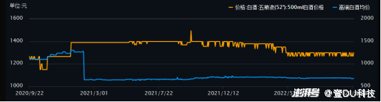 截至发稿时,在电商平台,2021年53°500 mL的飞天茅台价格为3249元,而在“五粮液官方旗舰店”中第八代普五52° 500mL的五粮液价格为1220元,价格差距也有着2.7倍左右。