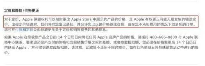 不过,也有电商会取消订单,这也在情理当中,苹果就在相关购买条款中明确:如果发现定价错误,将会通知用户取消订单并全额退款。