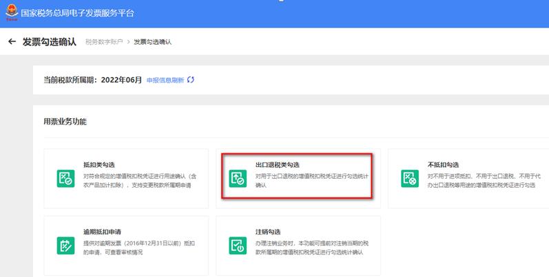 第二步 出口退税勾选用途确认