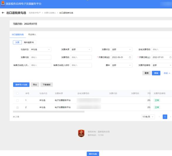 第一步 出口退税勾选