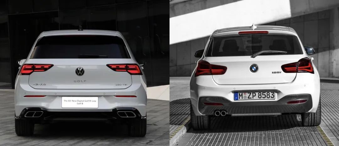 不过将牌照框放在后保险杠上的做法,放在中大型 SUV 上比较少见。一般来说,将号牌框放在后备箱的尾门上,能够平衡尾部的视觉重心,让车尾看起来更加饱满,有层次。蔚来 ES7、小鹏 G9、奔驰 GLE 以及宝马 X7 都是这么做的。一般像高尔夫、后驱版宝马 1 系这类小型两厢车,会普遍把车牌放在保险杠上,因为他们原本车身就低,宽度就窄,再将车牌放上尾门就会显得特别拥挤。所以这样的设计放在原本就大,还用了细条形尾灯的理想 L8 上,会显得尾部特别敦实。