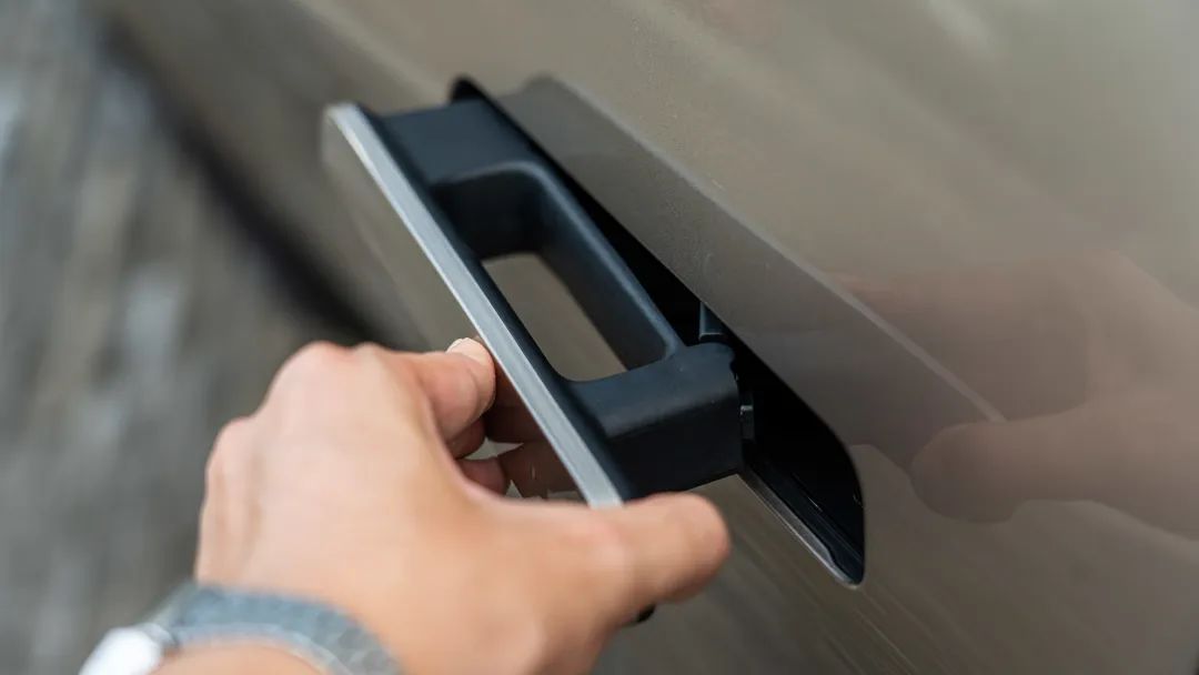 不过开门机构依旧是物理结构,你需要去做拉开的动作。在这五台车中,蔚来 ES7 一触即开的门把手最深得我心,我不需要刻意去拉一下门把手,手指自然触摸到把手内侧,车门就立刻自动弹开了。