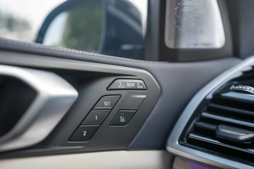 作为传统车型的宝马 X7,在驾驶位门板上也设有二排电动调节的按键。便捷程度是考虑到了,不过第一次上手还有一定的学习成本,不如直接直接操控来得简单。
