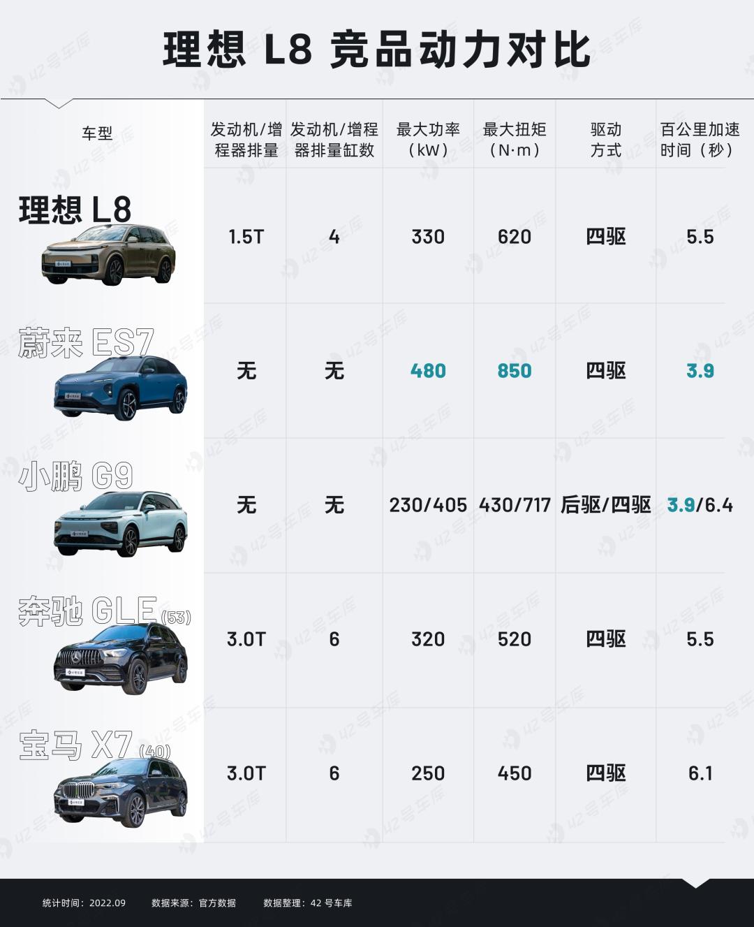 相较燃油组的竞品已经开始对标 AMG 了,不过来到纯电组,理想 L8 的纸面参数似乎又不那么炸裂。