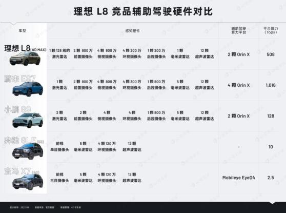 从硬件来看,新势力们都把自己的辅助驾驶硬件武装到了牙齿,激光雷达、周身感知、毫米波雷达统统都安排上了,而且大家都清一色采用了英伟达 Orin-X 的高算力平台,其中蔚来 ES7 直接对上了四颗,最大算力达到了恐怖的 1,016 Tops。