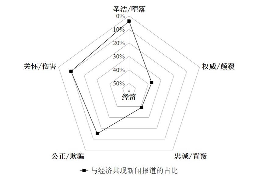 图1 五个道德基础与经济新闻报道的共现频率