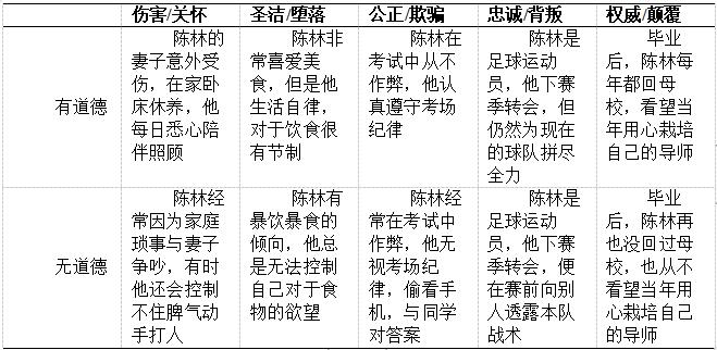表1 道德属性的描述(以故事一为例)