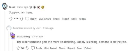 回复:“年龄越大,贬值的就越快。供应量在减少,而需求量在上升。”