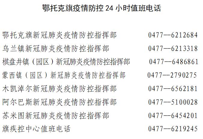 附件:鄂托克旗疫情防控24小时值班电话