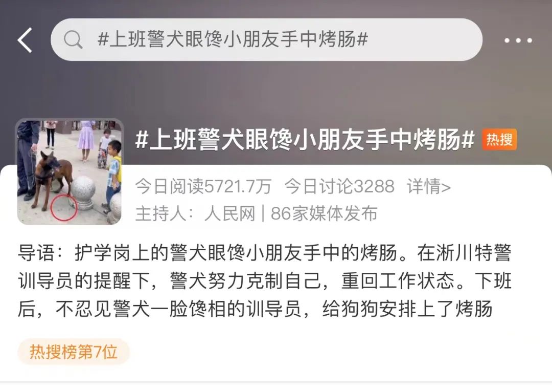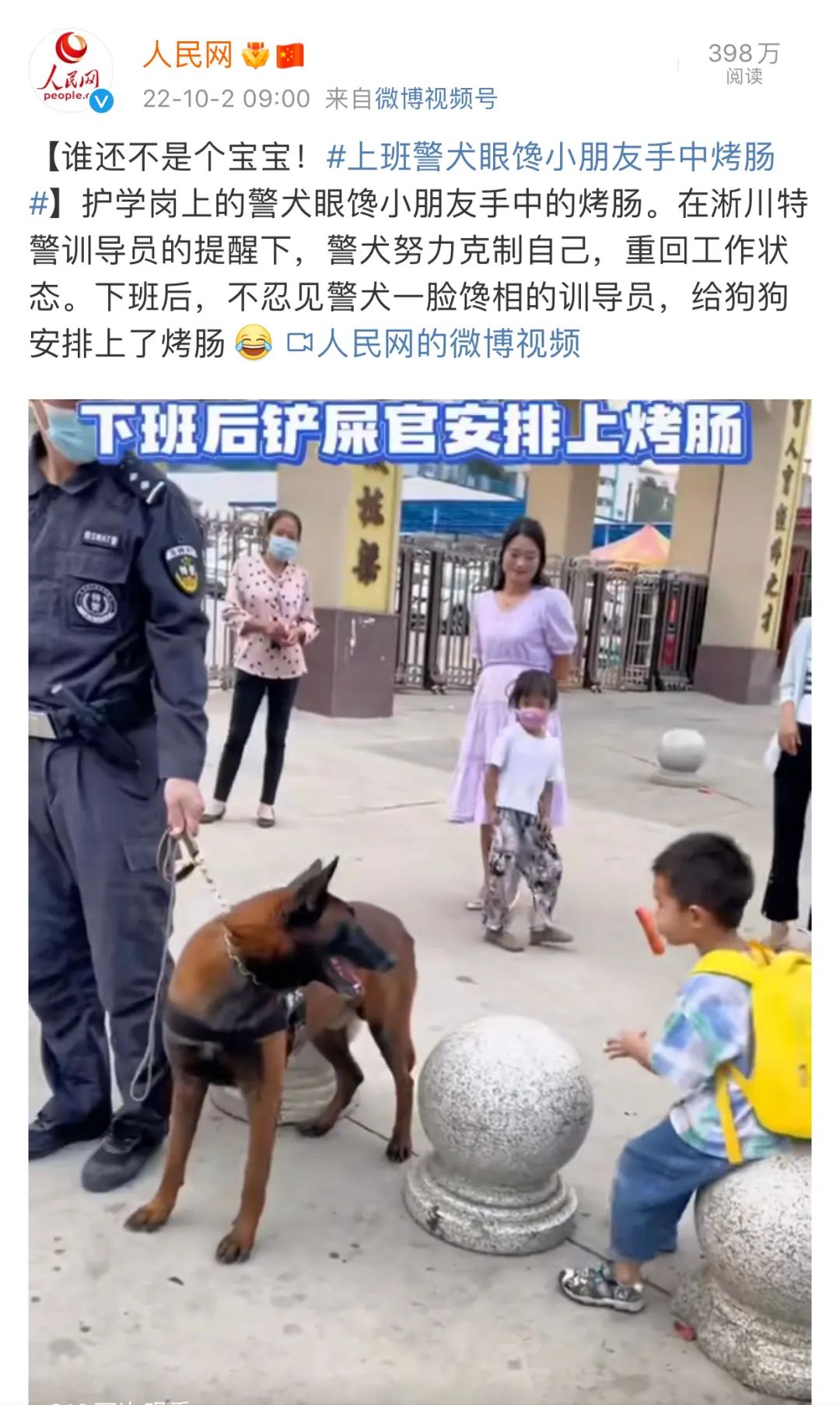 #上班警犬眼馋小朋友手中烤肠#今天,一条关于