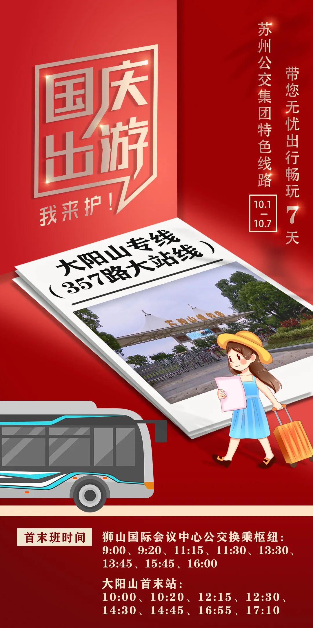 小鱼提醒大家,出行做好个人防护,乘车过程中请全程规范佩戴口罩哦!苏州旅游景区及文博场馆入园需查验健康码、行程码和72小时核酸检测阴性证明。具体要求请前往各景区微信公众号或官网查看。原标题:《坐着公交逛景区!多条特色线路玩起!》
