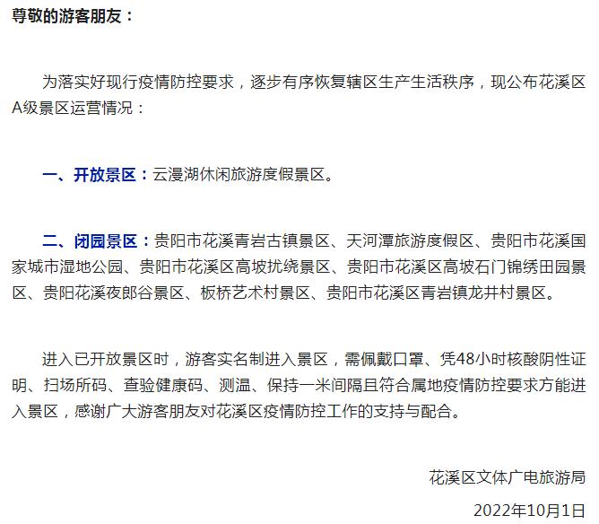 贵阳 · 花溪区A级景区据“花溪文旅”微信公众号1日消息,