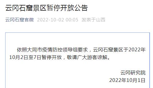 于2022年10月2日至7日暂停开放。