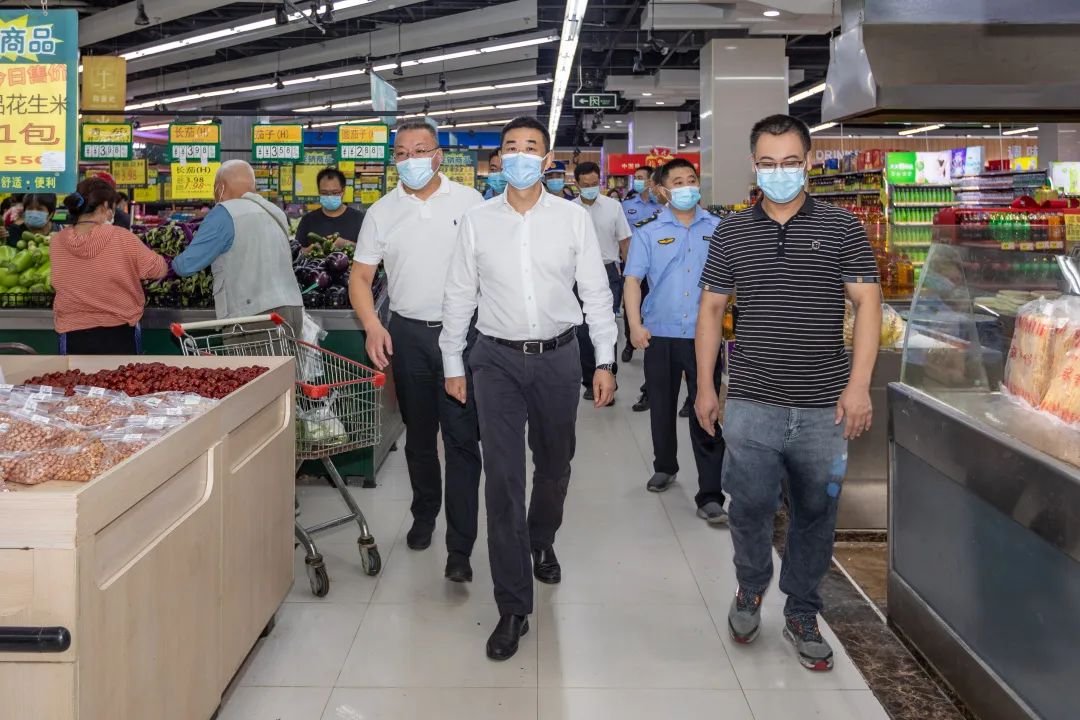 本周,丁剑还带队检查万达广场、大润发超市等商贸场所的疫情防控及安全生产工作(如上图)。