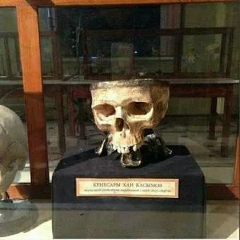 在遥远的东方,骷髅酒器的传统继续存在,在中世纪的亚洲,骷髅被制成酒器的除了被波斯人击败的昔班尼汗之外,到了19世纪,亚欧大陆内部又产生了最后的人头酒器:1847年,哈萨克汗国末代可汗—— 柯涅萨热汗,被沙皇俄国、小玉兹、吉尔吉斯人联军击败。吉尔吉斯人把可汗的头砍下送给俄国沙皇,沙皇又将头盖骨做成烟灰缸,此物至今存放在俄罗斯国家博物馆,被哈萨克人视为国耻。