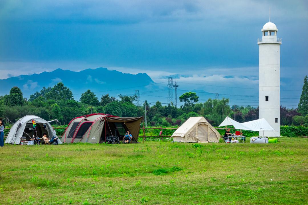 灯塔营地位于寿安镇岷江村百余亩稻田旁,一期约200亩,打造有草坪运动场地、田园秀道、林盘火锅、特色民宿等。