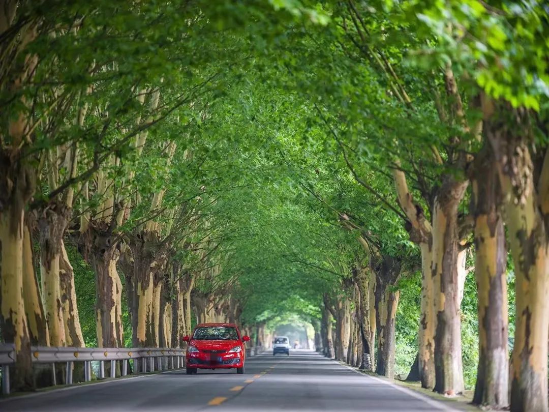 转角遇梧桐,这里是温江必来的网红打卡地,驾车在这条长廊上,仿佛驶入了法式的浪漫中。