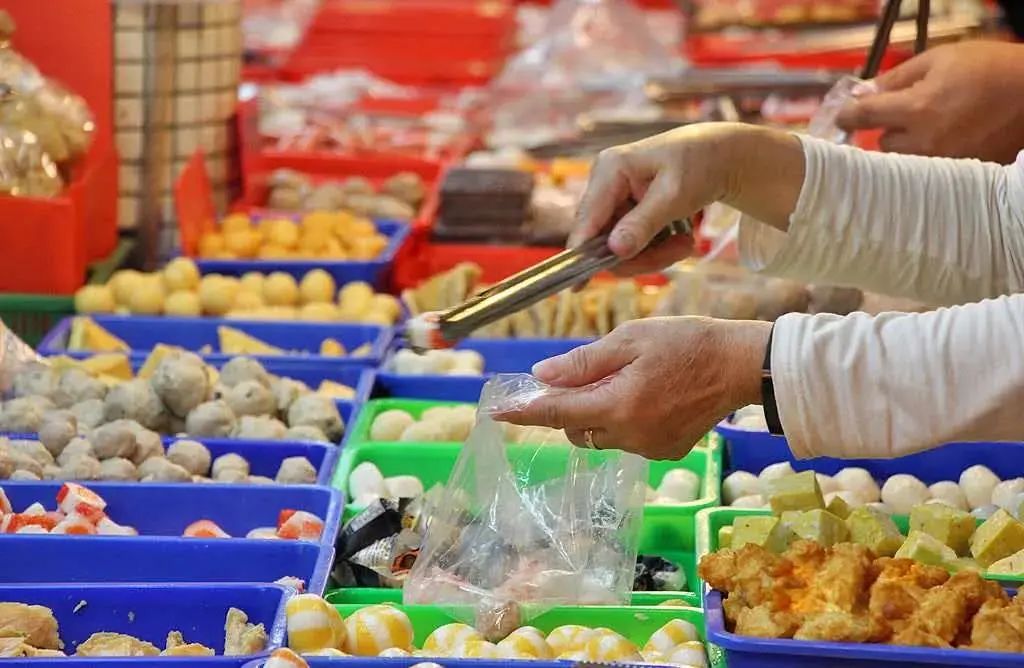 有些摊主或许考虑到部分消费者的需求不高,买不了一整袋的丸子,于是便散装售卖。有些买家也乐见其成,毕竟也想一次就吃到牛肉丸、猪肉丸、墨鱼丸等各种不同的肉丸子。