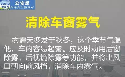 ★ 冷暖空气交替,昼夜温差大,大雾、团雾多发,严重影响交通安全。高速公路行车遇浓雾、团雾,应立即减速、谨慎驾驶,并开启前后雾灯、示廓灯和危险报警闪光灯,就近驶入服务区或驶出高速公路。