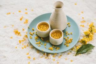 做法:收集到新鲜桂花后,先放置阴凉通风处风干一夜,然后以每斤桂花加四两白糖(或碎冰糖),与花拌匀,放入酒缸内任其发酵2日-3日,加入米酒(亦可用高粱酒),密封窖藏,一年后启封,再加入白参、红枣浸泡1月左右,即可开启饮用。