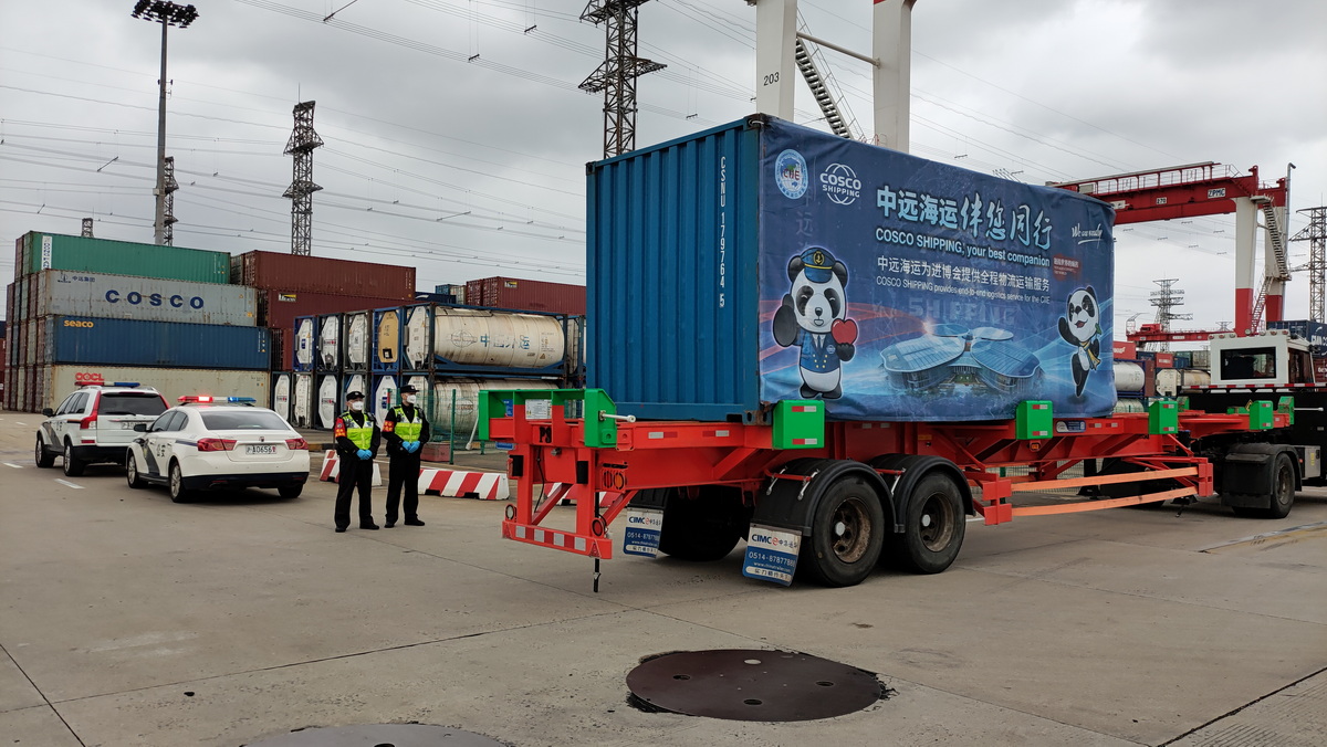 进博会首批海运全展品箱完成卸载,警方牵头多部门保驾护航