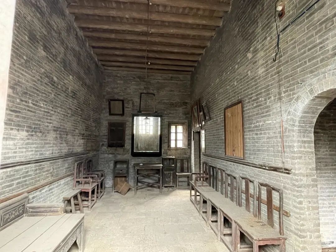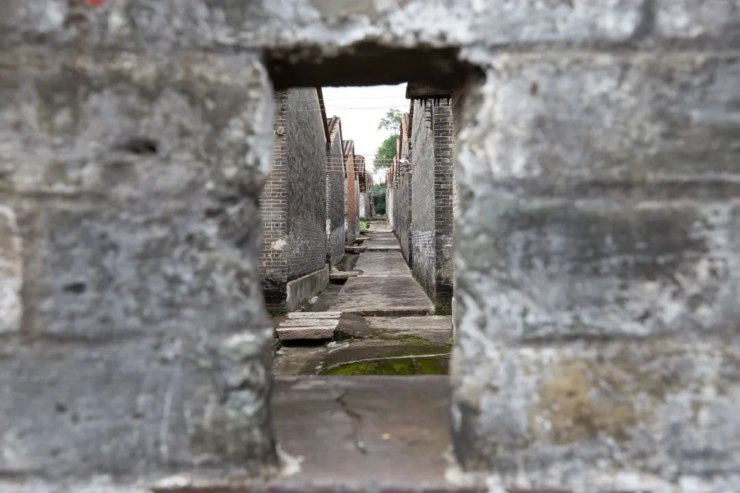 ▲槎塘村第一、二排房屋门口两两相对。程晴 摄村里的建筑一字排开、彼此相连,最外一圈约有20间房子,门口全部往里开。这一排的房子同时兼顾村庄围墙的功能,以物为墙,并设枪眼,唯一的门楼是唯一的通道,以此增强村庄防御性。从第二排开始,村屋的大门就朝外开了,此乃布局的第一“妙”。