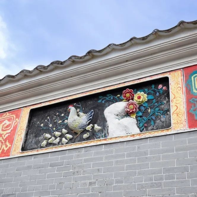 村民根据当地传统,在屋檐下绘上各种人物、风景之类的壁画,或用灰油雕出人物、花鸟等浮雕。难得的是,这些装饰至今保存完好,经重新上色等处理后,花鸟人物仍栩栩如生,十分精美迷人,为古韵悠悠的古村注入了生命力。