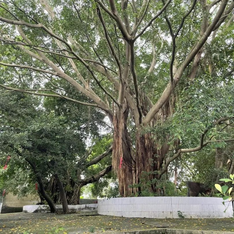 ▲槎塘村后山上的两棵百年古榕。程晴 摄一路往村子深处走,走到第十条巷道后就是槎塘村的后山了,山上种植着两棵巨大的古榕,要六到七人才能合抱,一左一右守护着古村,老村民苏伯说,这也是槎塘村的一大风水考究,此乃布局的第三“妙”。