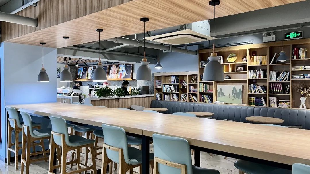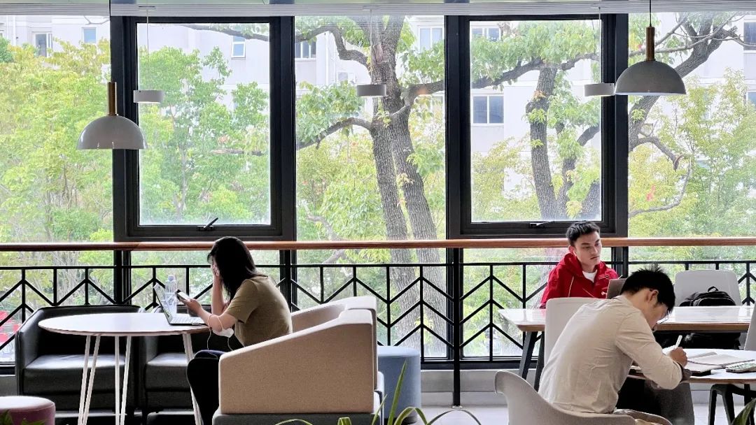 咖吧布局灵活,散座区、吧台区、讨论室、会议室互不干扰,很适合同学在这里自习和研讨噢。在这样的落地窗边沉下心读一本书再安逸不过了。
