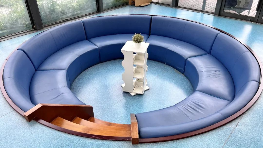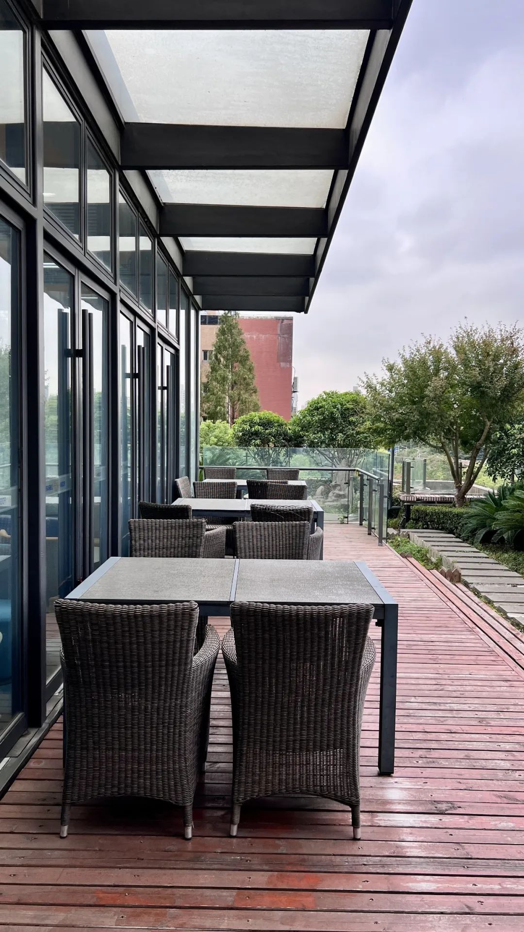 馆内还有一个露天花园和带有内嵌式沙发的玻璃房。学习之余可以在这里漫步,眺望美景。