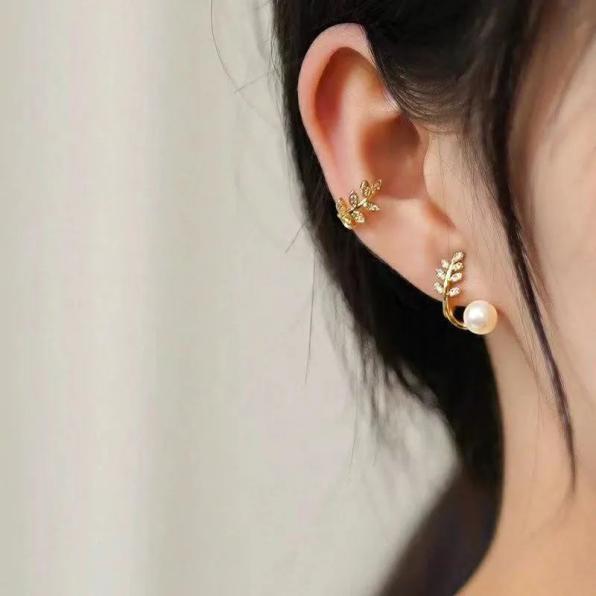 在通体的金色树叶造型中镶嵌了闪闪发亮的水钻,再衔上一粒温润的珍珠,酷感中又多了一丝温柔。