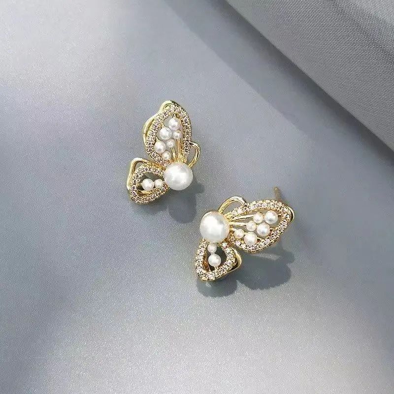 蝴蝶的翅膀部分镶嵌着水钻和珍珠,简约不单调,无意间透露出精致感。双层金属蝴蝶,一层锆石镶嵌加上一层金属,刚柔结合,搭配珍珠点缀。