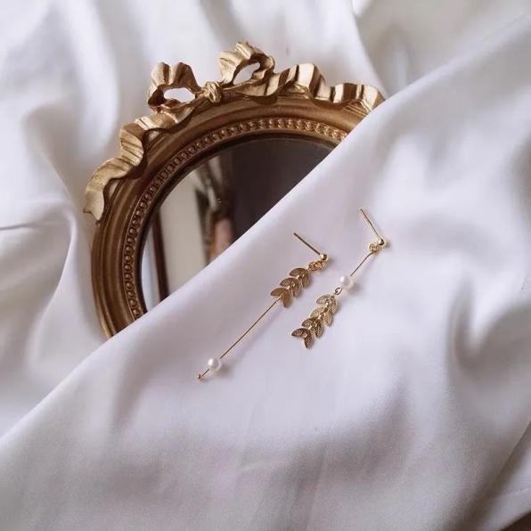 羽毛上还有一颗圆润的珍珠点缀,是不是很像优雅的天鹅在水中游泳,水珠沾到细腻的羽毛上。珍珠的存在提升了视觉点,强化了耳饰的存在感。