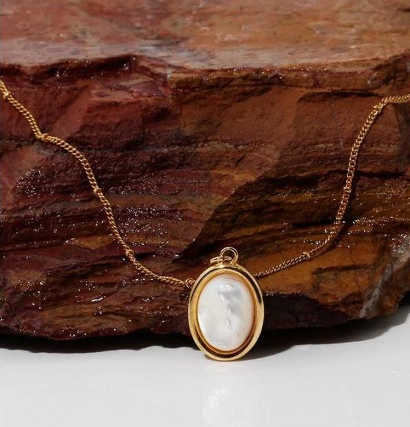 吊坠上是天然的白色珍珠,不易掉色,视觉给人端庄典雅的女性魅力,其上方四颗不同形状的钻石,在阳光下光彩夺目,同时也很提亮肤色。