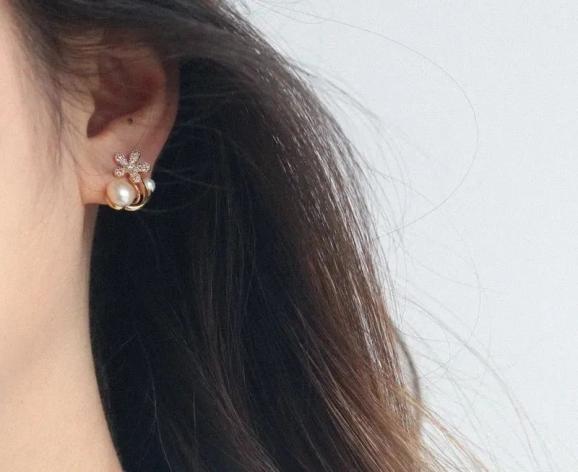 珍珠莫不是优雅的代名词吧!低调如白天鹅般迷人的白珍珠,圆润无暇。花朵是微镶的锆石,珍珠和钻石的搭配真的是相得益彰,加之花朵形状给人温柔质感,走淑女路线的小姐姐带上去更显温柔气质,搭配新中式裙装,整个人就是把优雅拿捏了。