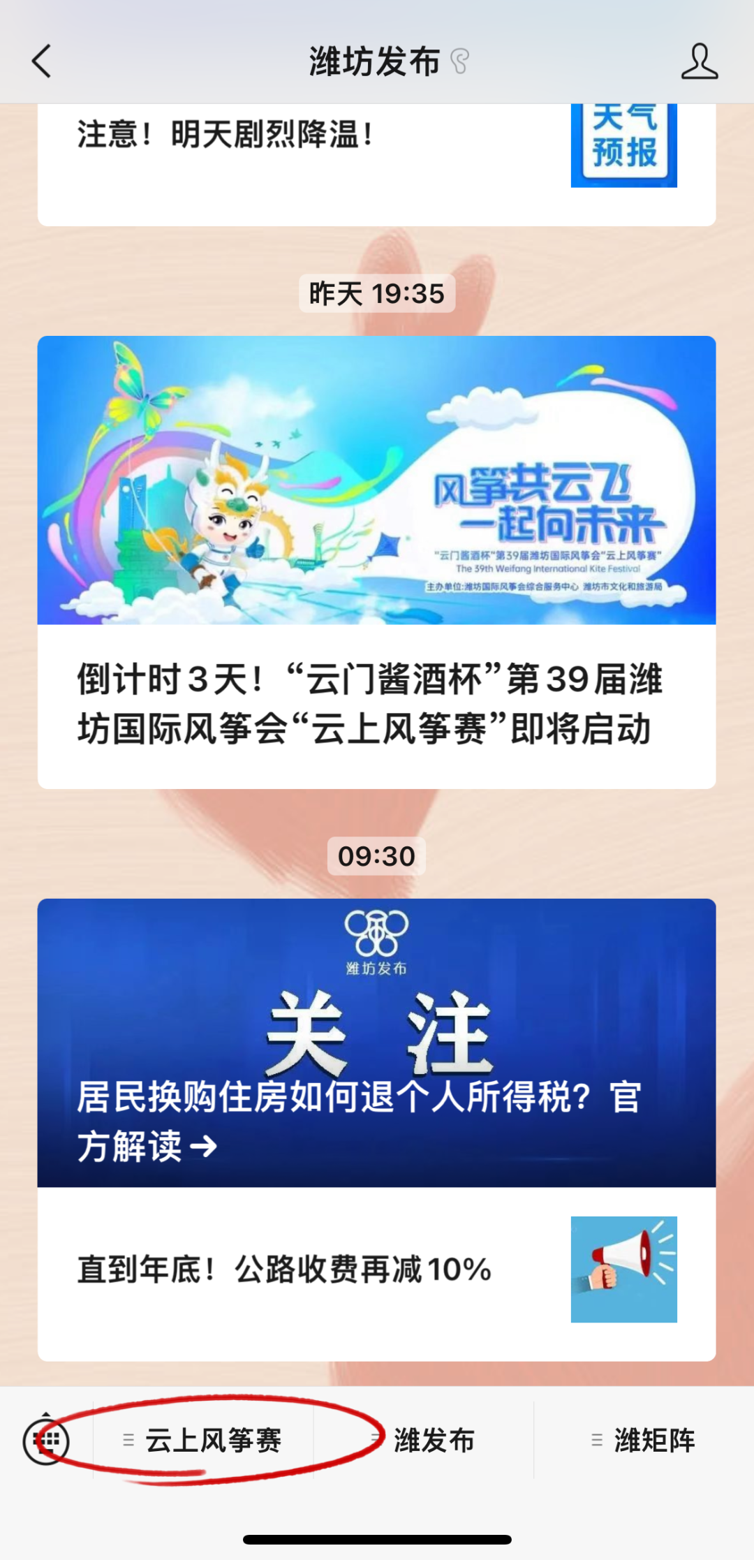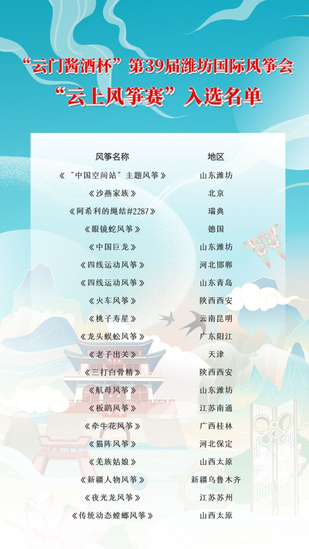 “云门酱酒杯”第39届潍坊国际风筝会暨第18届世界风筝锦标赛以“云上风筝赛”的形式举办,这是自1984年以来首次采用线上全网参与的形式举办风筝会。
