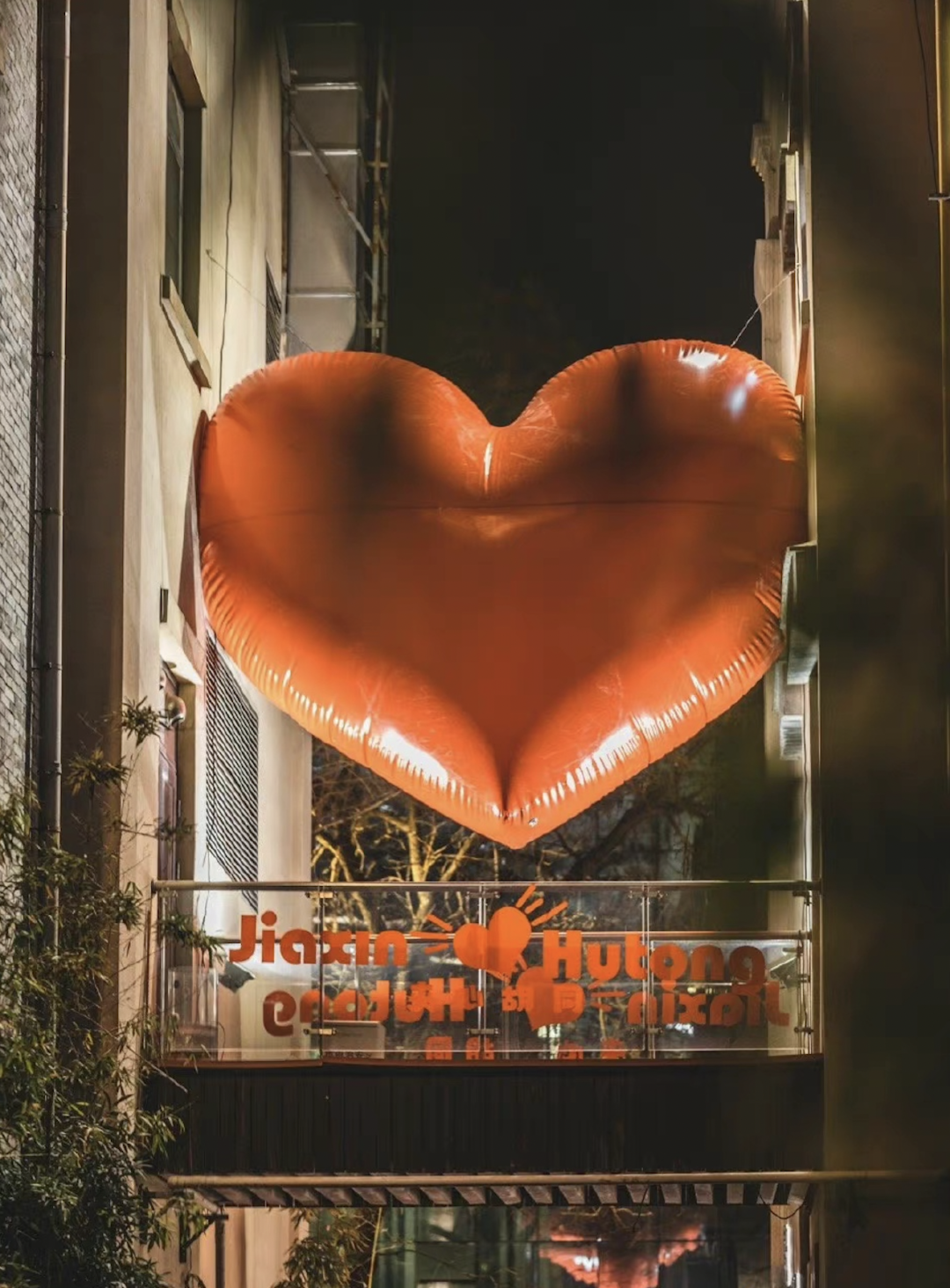 再来浪漫爆棚的夹心胡同走走吧,这里有一颗超大的红色爱心被“悬空”夹在两栋楼之间,宛若红心从天而降,许多人在这里拍照打卡,留下美好的回忆。