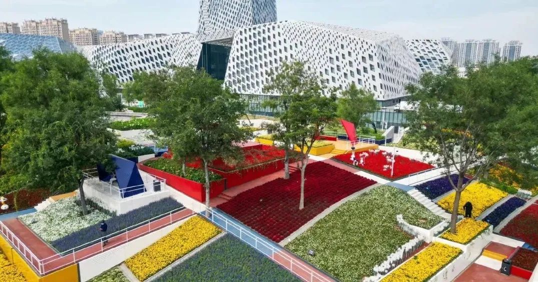 最近,济南腊山河东路与威海路交叉口西北角的三馆艺术花园,出现了超级漂亮的“七彩花田”。