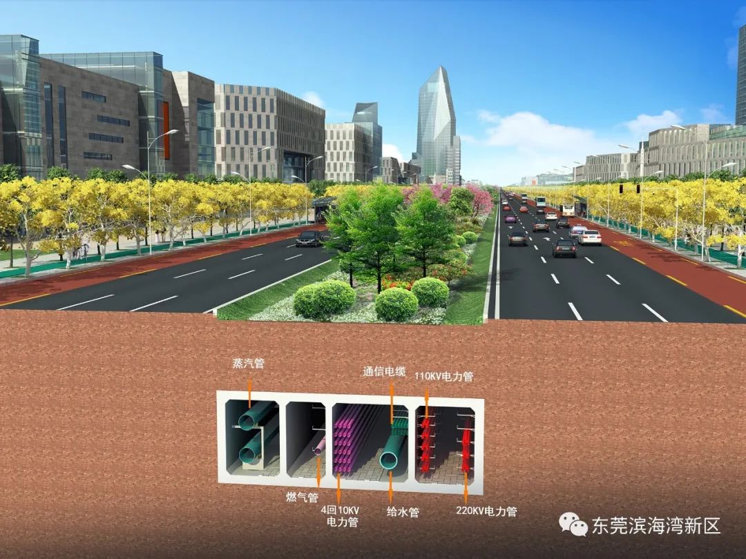 值得一提的是,作为东莞市最大的在建管廊工程,东湾大道项目综合管廊的投入占总投资的56%,设置了燃气舱、热力舱、高压电力舱、综合舱。