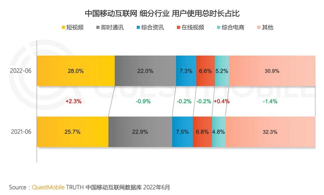 根据QuestMobile2022《中国移动互联网半年大报告》截至2022年6月,在整个互联网行业中,短视频的用户使用总时长占比近三成,其中,抖音、快手短视频平台观看直播用户比例已提升至88.3%和87.4%。