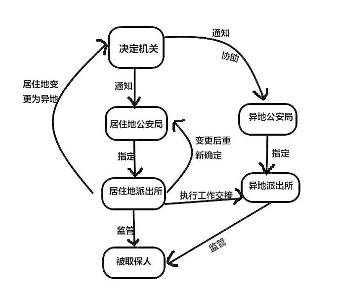被取保候审人居住地变更的,执行取保候审的派出所应当及时通知决定取保候审的公安机关,由其重新确定被取保候审人变更后的居住地派出所执行。变更后的居住地在异地的,决定取保候审的公安机关应当通知该地公安机关,由其指定被取保候审人居住地的派出所执行。原执行机关应当与变更后的执行机关进行工作交接。