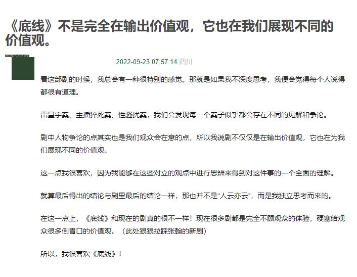 那么,网友都是怎么评价《底线》的呢?我们一起往下看↓ ↓ ↓《底线》 · 网友评论精选