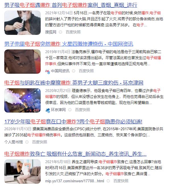 上网搜索,电子烟爆炸的新闻也是屡见不鲜。可以发现