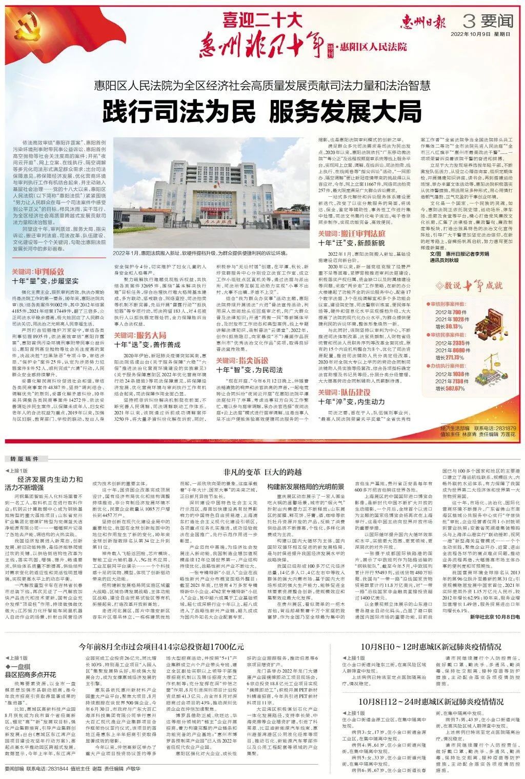 【惠州日报】惠州非凡十年丨惠阳区人民法院:践行司法为民 服务发展大局