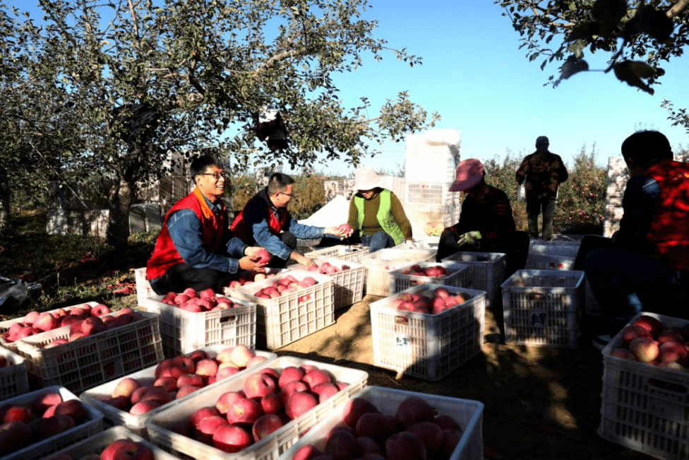 ▲国家电网陕西电力张思德(延安枣园)共产党员服务队队员帮助村民采摘苹果。