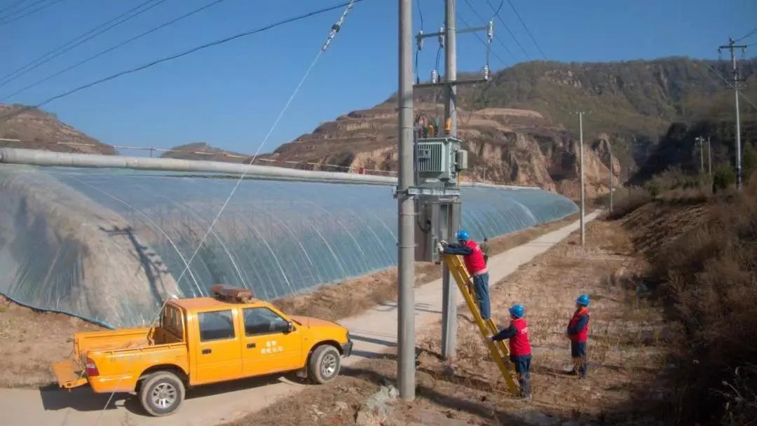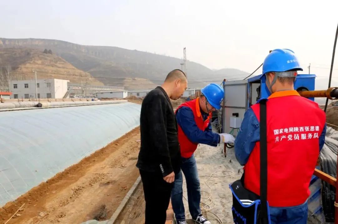 ▲国家电网陕西电力张思德(延安枣园)共产党员服务队队员上门服务农业大棚用电。