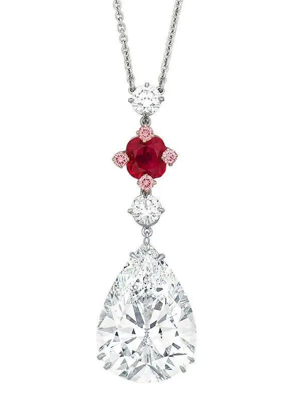 22.18克拉D色VVS1净度钻石及红宝石吊坠项链